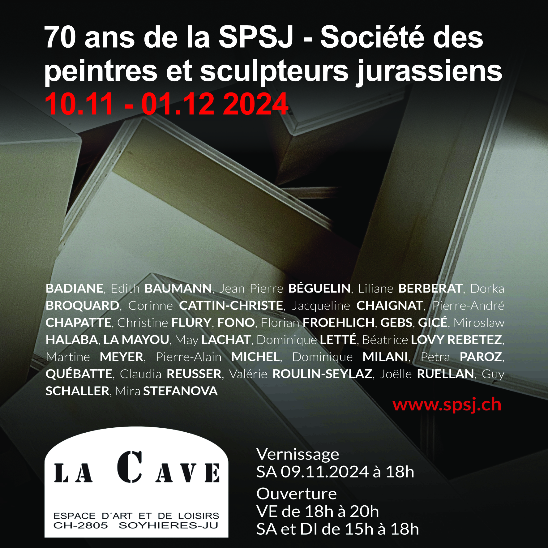9 novembre - 1 décembre 2024 Expo collective - TerminéeLa Cave - Espace d'art et de loisirs - 2805 Soyhières (JU)